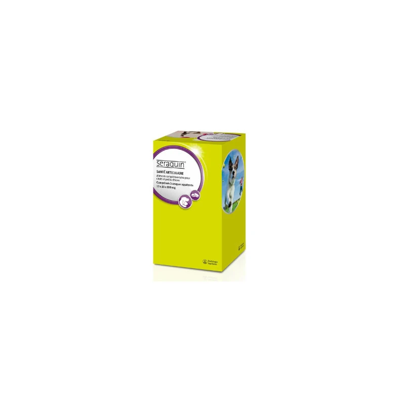 Le Seraquin Chat est un aliment complémentaire permettant de soutenir la fonction articulaire chez les chats et les petits chiens (< 10 Kg), sujets aux problèmes d’arthroses ou ayant subi une intervention chirurgicale.