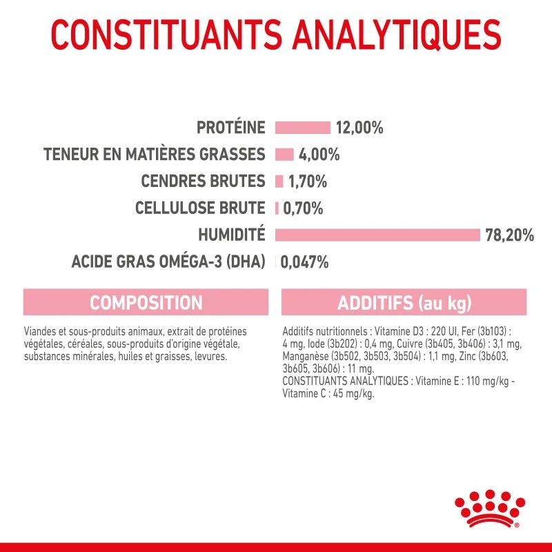 Les sachets repas Emincé en sauce Royal Canin Cat Kitten sont spécialement conçus pour les chatons jusqu’à l’âge de 12 mois.