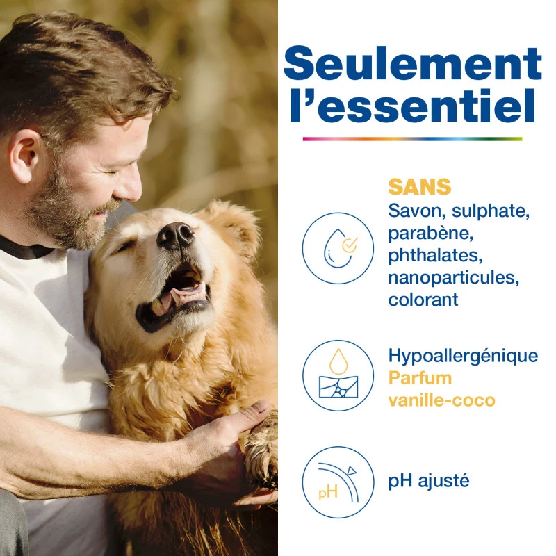 - Restructurant, facilite le démêlage et laisse le poil doux et brillant.