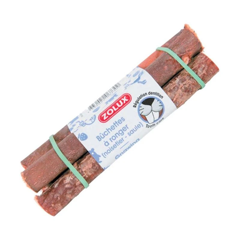 Les bûchettes à ronger de chez Zolux, fabriquées avec du noisetier et du saule, sont conçues pour les rongeurs et les lapins. Ce bois à ronger est élaboré avec des matériaux 100 % naturels pour limiter la pousse dentaire des rongeurs.