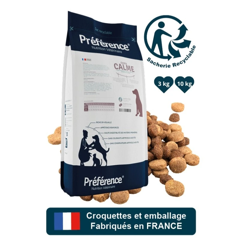 Préférence Chien Calme est un aliment complet pour chien stérilisé, en surpoids ou qui bouge peu. Aliment idéal pour chien de type molossoïdes (Bulldog, Boxer, Rottweiler) qui ont une tendance au vieillissement précoce.