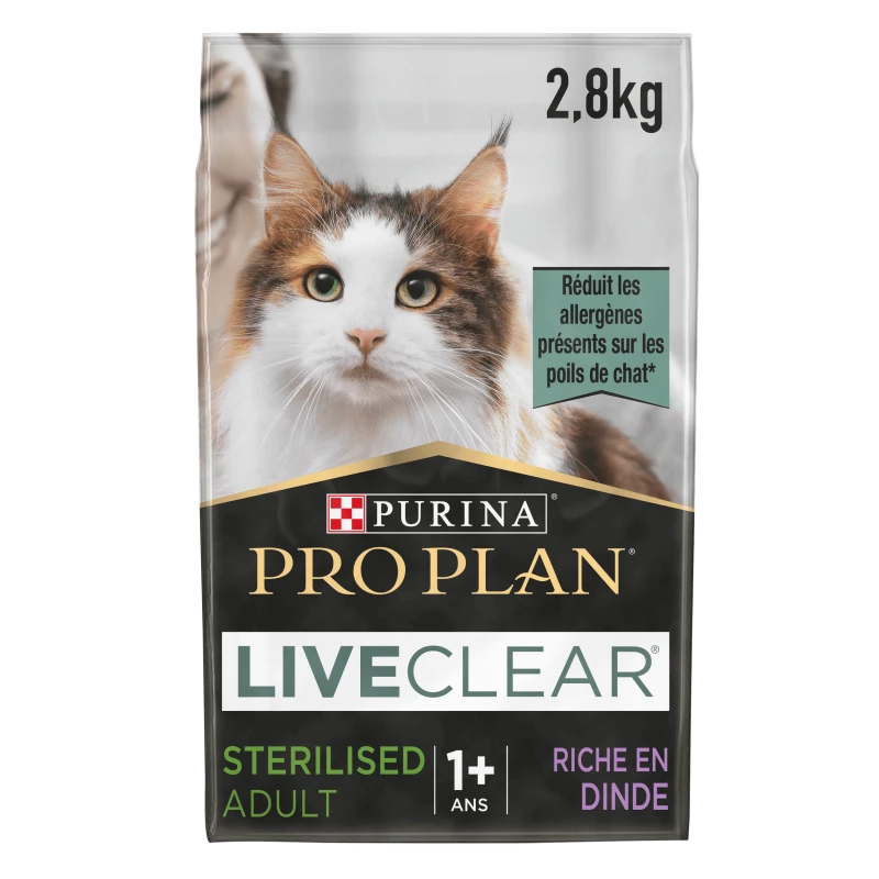 Les croquettes Cat Liveclear Sterilised Adult à la dinde réduisent les allergènes sur les poils de votre chat stérilisé tout en l’aidant à maintenir un poids idéal.