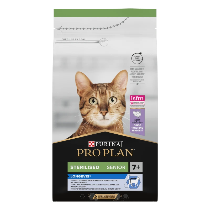 Les croquettes Cat Sterilised Adult 7+ Longevis à la dinde sont conçues pour les chats séniors stérilisés de plus de 7 ans.