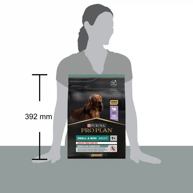 Les croquettes Dog Small & Mini Adult Optidigest Grain Free Dinde de chez Purina Pro Plan, répondent aux besoins nutritionnels des chiens adultes de petite taille souffrant de sensibilité digestive.