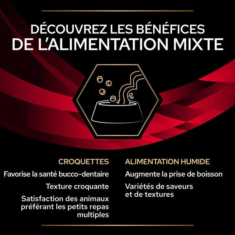 Pour combler l’appétit de votre chat, vous pouvez mixer les sachets repas au bœuf avec les croquettes Ppvd DM StOx Diabetes