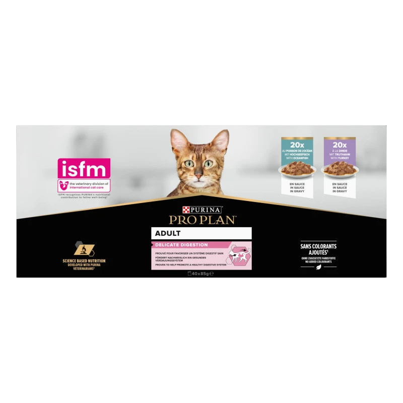 PRO PLAN Adulte Delicate Digestion Dinde Poisson Sauce 40x85g Pochons pour chat adulte