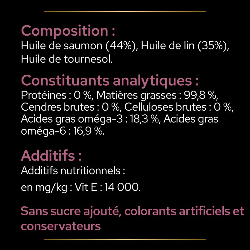 - Permet de soutenir une peau saine, hydratée et souple et un pelage brillant