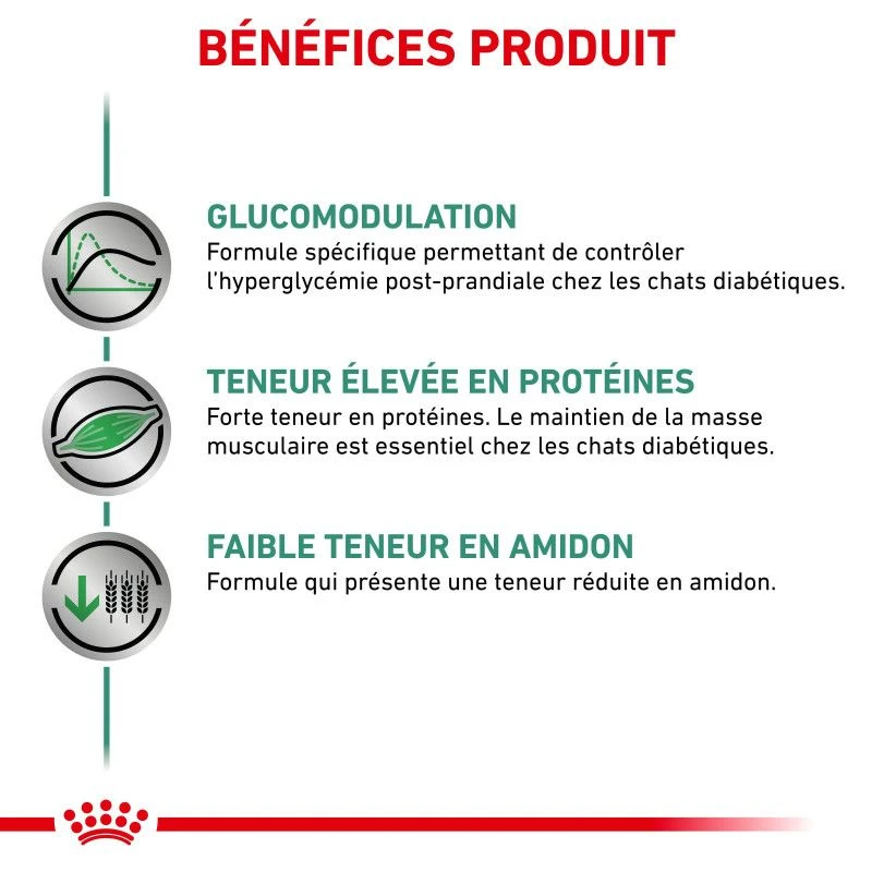 Les sachets repas Royal Canin Cat Diabetic sont destinés à la prise en charge nutritionnelle du diabète chez le chat. Veuillez consulter votre vétérinaire avant utilisation.