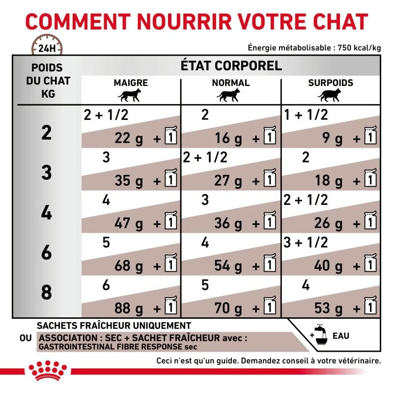 Les sachets Royal Canin Cat Fibre Response sont destinées à la prise en charge nutritionnelle des problèmes digestifs chez le chat. Veuillez consulter votre vétérinaire avant utilisation.