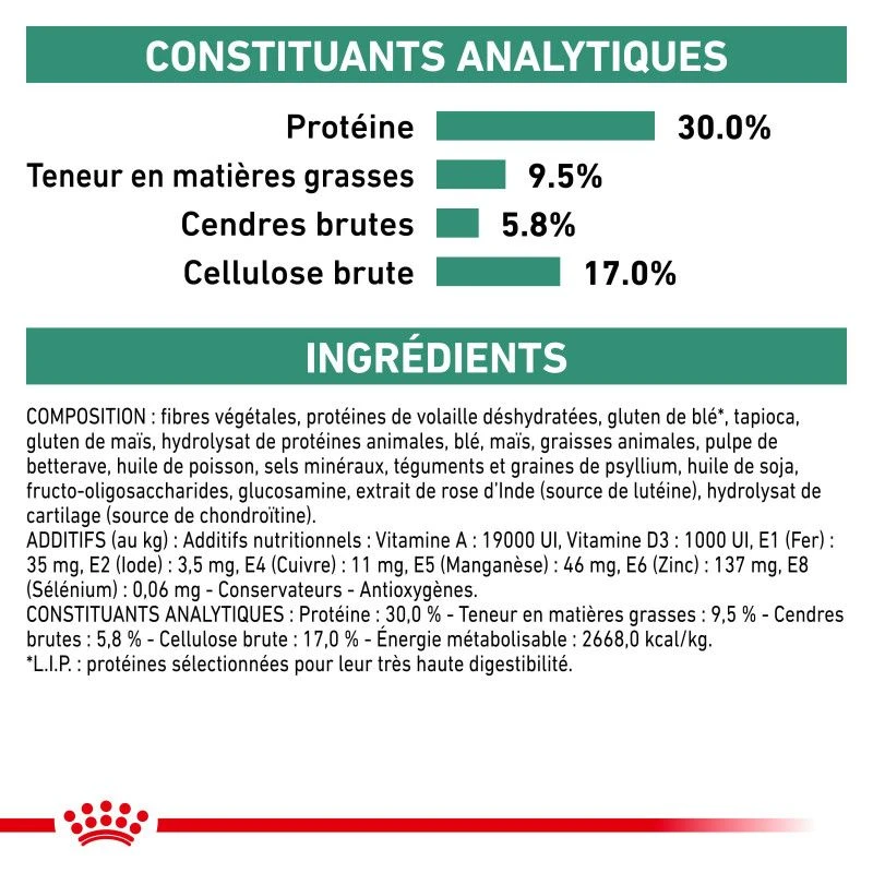 - La valeur énergétique est basse pour faciliter la perte de poids chez l’animal.