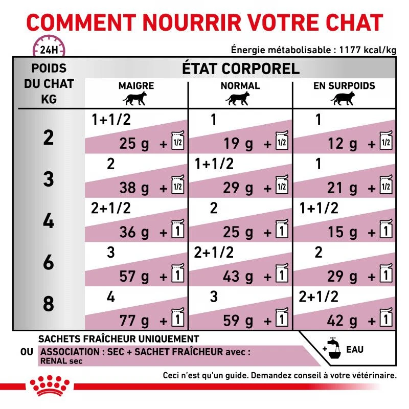 A savoir: les sachets repas Veterinary Health Nutrition Cat Renal Poulet Royal Canin aide à limiter le risque associé de troubles digestifs liés à l’urémie .