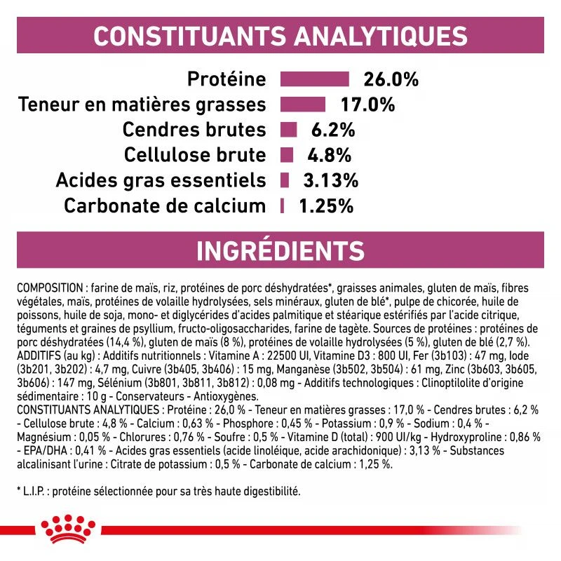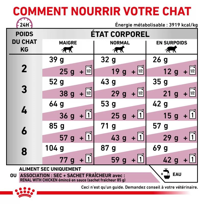 Le sac de croquettes Veterinary Health Nutrition Cat Renal Special est destiné à la prise en charge nutritionnelle d’une maladie. Veuillez consulter votre vétérinaire avant utilisation.