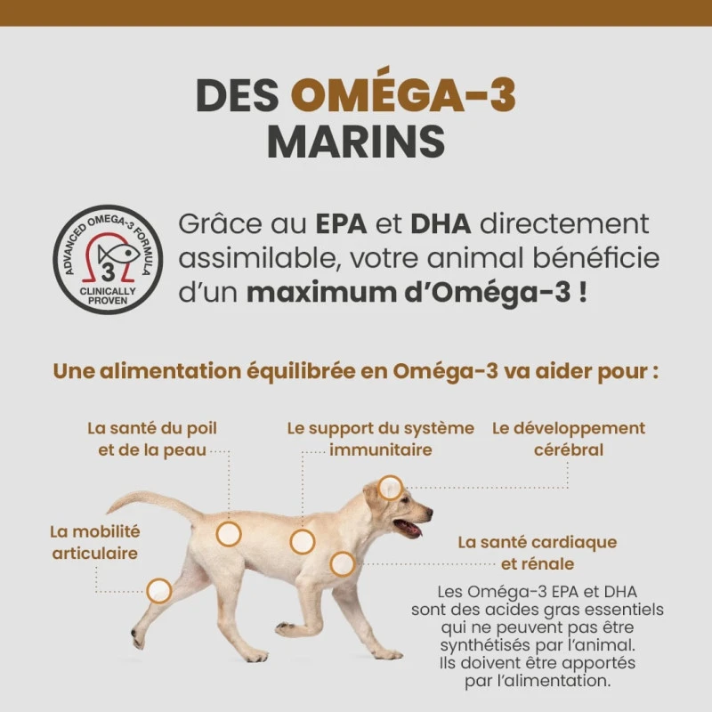 - Apaisent les inflammations grâce aux Oméga-3 EPA et DHA issus du poisson.