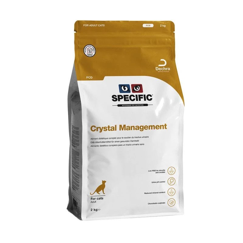 Les croquettes Specific FCD Crystal Management sont destinées à la prise en charge nutritionnelle des problèmes urinaires et rénaux chez le chat. Veuillez consulter votre vétérinaire avant utilisation.