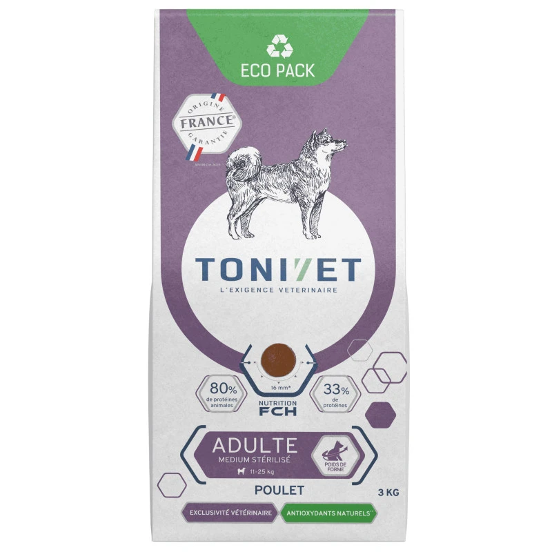 Les bienfaits de Tonivet Chien Adulte Medium Stérilisé Poulet :