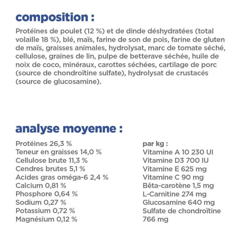 - Soutien des os et des articulations: soutiennent des articulations saines grâce à une nutrition enrichie en glucosamine et en chondroïtine