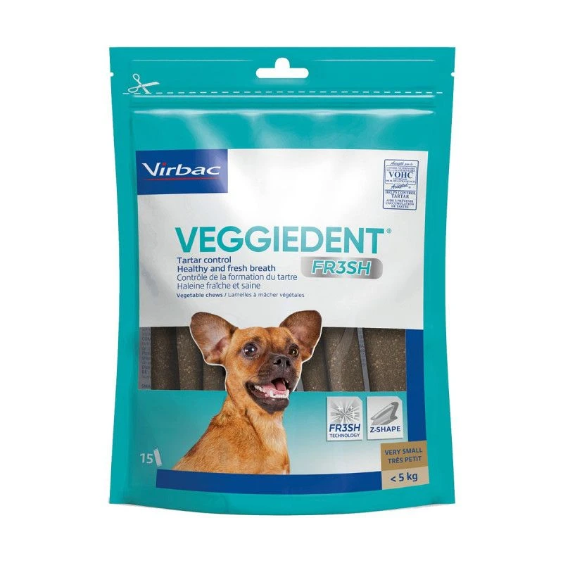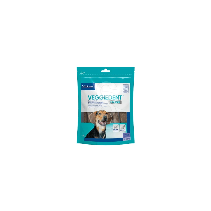 Les lamelles à mâcher Veggiedent Fresh de chez Virbac permettent de favoriser une bonne hygiène dentaire chez les chiens, grâce à sa composition unique à base de plantes.