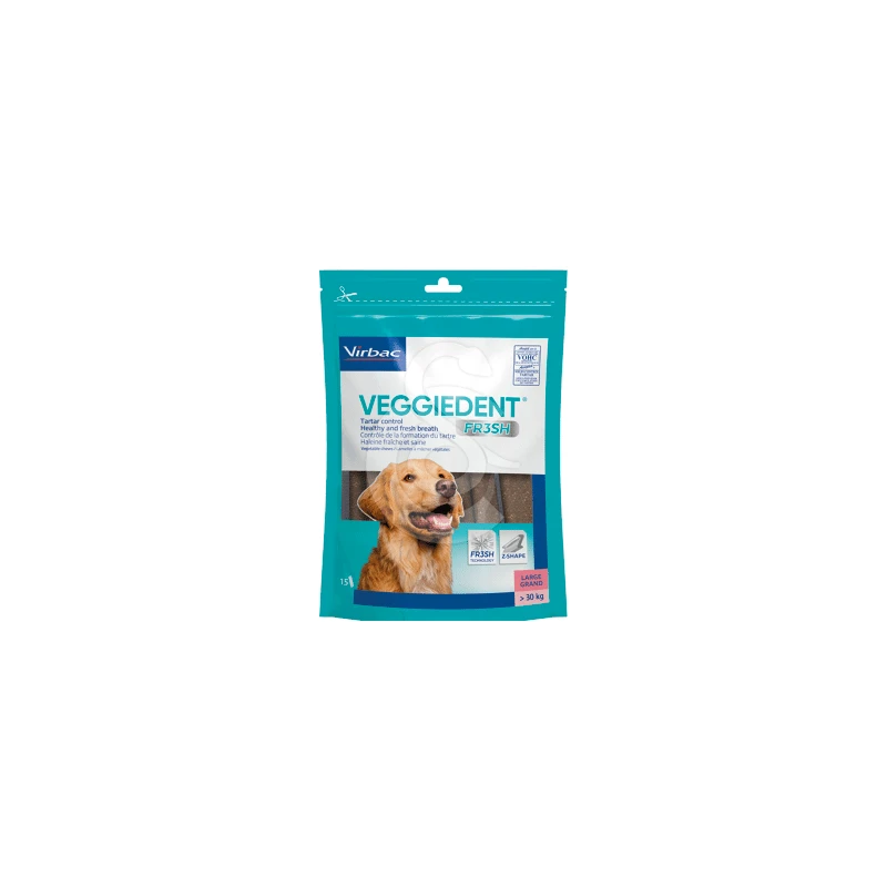 Les friandises VEGGIEDENT Fresh contiennent une appétence élevée et une forme pratique, ce qui rend l’administration facile et agréable pour vous et votre chien.