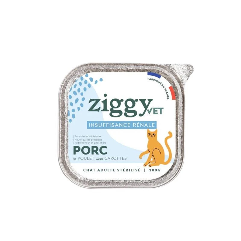 - Les pâtées Ziggy Chat Adulte Insuffisance Rénale Porc Pâtée sont destinées à la prise en charge nutritionnelle du trouble rénal chez le chat. Veuillez consulter votre vétérinaire avant utilisation.